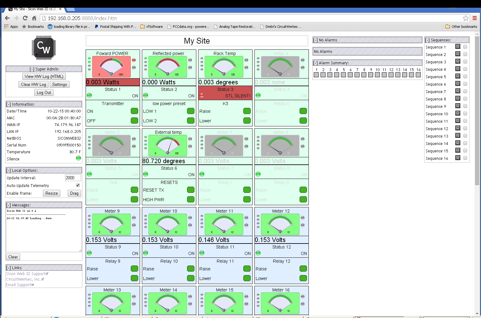 The Sicon-8's internal Webserver can send